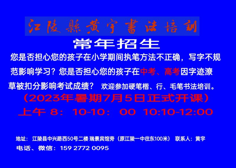 2023年暑期黃宇書(shū)法培訓(xùn)招生